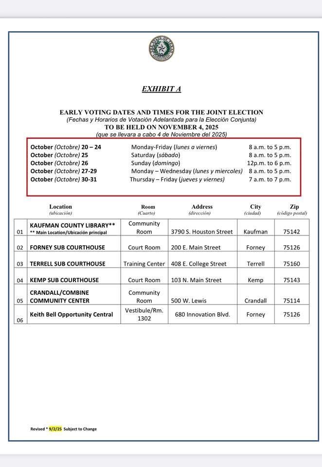 Early Voting Begins Today for Crandall ISD VATRE (Proposition A)